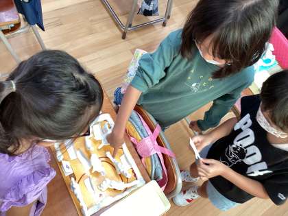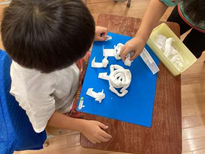 自分だけのオリジナル動物園。ふれあいコーナーがあったり、餌やりコーナーがあったり、楽しく友達同士で遊んでいました。自分人形を作って一緒に遊んでいる子もいました。