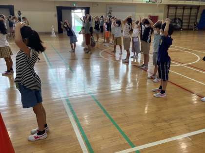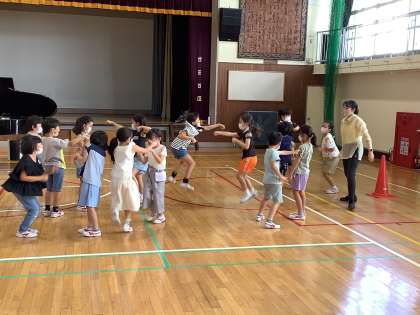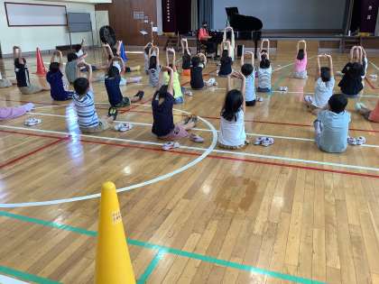 最後は、学芸会で歌う予定の歌の振り付けを覚えてから、「カンガルー」と「たこ」になりきって踊りました。