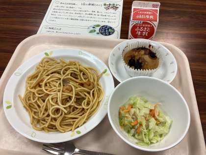 10月10日は「目の愛護デー」です。疲れた目をそのままにしておくと視力が低下し、頭痛や肩こり、ドライアイなどの病気なってしまいます。目を休めて、目の健康によい食べ物を食べましょう。今日のブルーベリーマフィンの中に入っているブルーベリーにはアントシアニンが含まれていて、目の回復機能に効果があるといわれています。