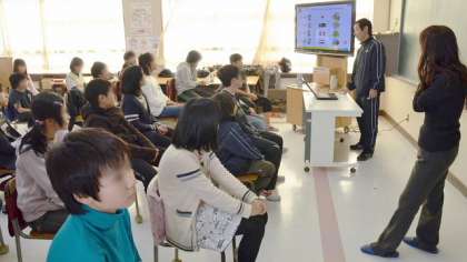 15日、6年生の外国語(英語)活動のようすです。今日は、英語支援員の先生がついて、正しい発音やイントネーションで見本を示してもらいました。子どもたちも元気に大きな声で発音し学習していました。