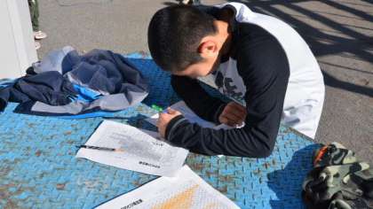 20日中休み。校庭のあまりめだたないところで、なわとびに黙々と取り組んでいるメンバーを発見。6年生男子です。課題のなわとびカードで、新しい技に次々と挑戦しがんばっていました。