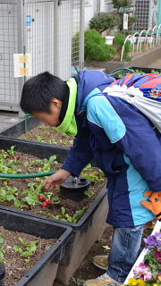 22日終業式の日、帰りに、子どもたちがプランターに自分たちでまいた種からできたラディッシュを持ち帰りました。別名ハツカ(二十日)ダイコンですが、ここまで大きくなるのに1ヶ月以上かかりました。よく洗ってスライスしてサラダにどうぞ。来年、冬休み明けにももう少し収穫できそうです。