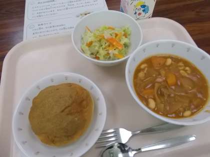 ビスキュイパンは、バター、卵、小麦粉を混ぜたクッキー生地をパンにのせて焼き上げたものです。今日はクッキー生地にきな粉を合わせています。きな粉の香りがふんわり効いたビスキュイパンを味わってください。
