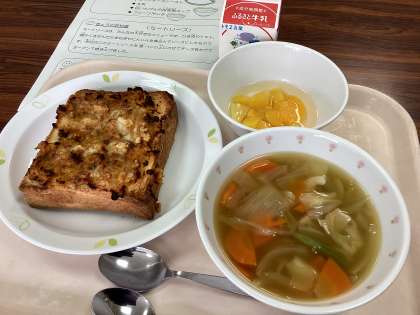 ミートソースは、皆さんの大好きなメニューの一つです。ひき肉やトマト、細かく刻んだたまねぎやにんじんを煮込んで、ソースにしたものです。今日はこのミートソースを食パンの上にのせて、チーズをかけてオーブンで焼き上げました。