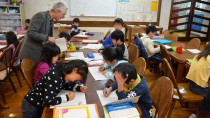 21日(土)、新年第1回目の新寺子屋が行われました。この日から新規講師の先生を迎え、紹介がありました。よろしくお願いします。寒いなか集まった子どもたちが、熱心に勉強していました。