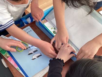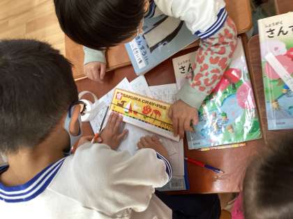 算数の学習では、「くらべかた」の学習に入りました。1時間目で直接比べる方法について学習し、この時間はいろいろな長さを写し取って比べる活動をしました。教室にあるものを紙テープを使って長さを測り、発表しました。振り返りでは、テープで調べると動かせないものの長さも比べられたり、いろいろなものの長さを一度に比べられたりすることが出来ることを発表していました。