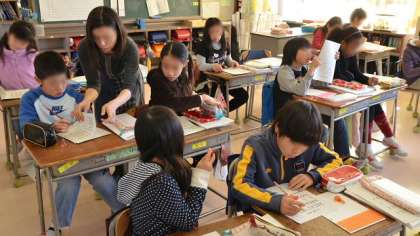 26日(木)、4年生が一連の福祉に関する学習で、この日は点字を学習しました。区の総合福祉センターから点字の先生をお呼びして、点字の役割や特徴をレクチャーしていただき、その後実際に点字で簡単な文章を打ってみました。