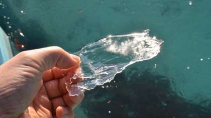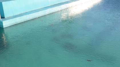 30日朝、この冬一番の冷え込みという予報通りに一段と冷え込んだ朝となりました。この日ついにプールが全面結氷しました。日当たりがよいので、先週までの冷え込みにもかかわらず凍ることはなかったプールですが、さすがに今朝は凍りつきました。1ミリくらいの薄い氷ですが、プール表面全体が氷に覆われているようすは、一層寒さを感じさせます。