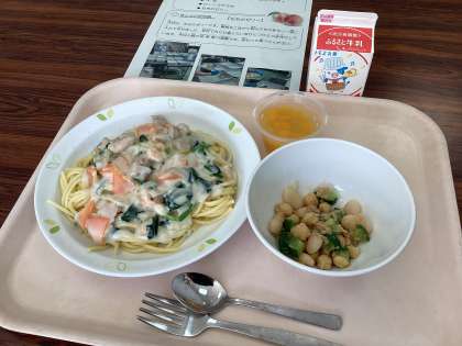 海老とほうれん草のクリームスパゲッティ