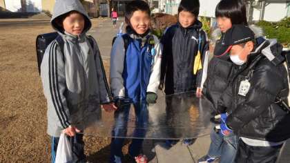 31日、1月も今日で終わりです。昨日ほどではありませんが冷え込んだ朝、登校してきた子どもたちが大きな氷をかかえてきました。みんなで力を合わせて団地内の池からとってきたようです。あまりほめると、登校途中の寄り道を奨励することになりそうですが、寒さに負けない希望っ子たちのパワーを感じます。
