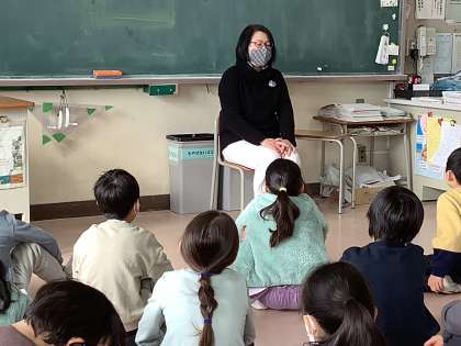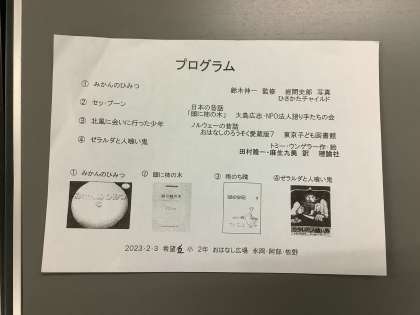 どの学級も真剣に聞き入っていました。読んでいただいたプログラムを印刷していただいた紙を持ち帰りましたので、図書館などで借りて読んでみるといいですね。