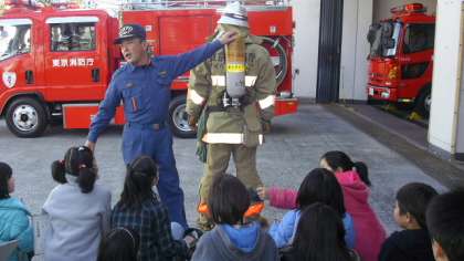 31日、3年生が成城消防署千歳分室を見学しました。消防車や身につける装備品、消防署の中を見せてもらいました。