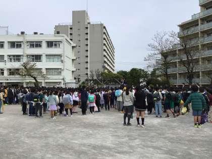 転出される先生、新しく希望丘小学校に来た職員の紹介があり、その後式がありました。