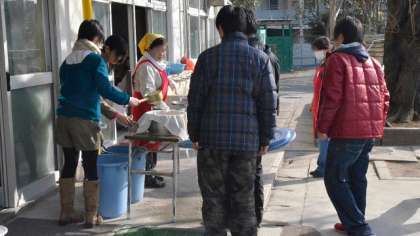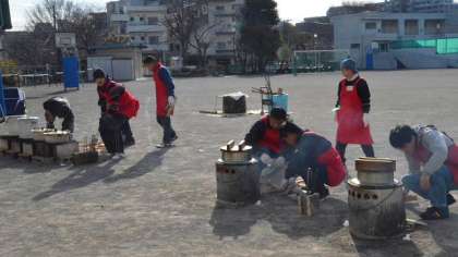 19日(日)、遊び場開放委員会主催の恒例「おもちつき」が校庭で行われました。ぐっと冷え込んだ朝ですが、幸い暖かい日差しに恵まれ、8時30分から関係の方々が集まって準備を始めました。昨日の午後にも下準備をして、今日の餅つきに備えました。裏方としての働きに頭が下がる思いです。