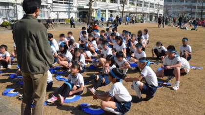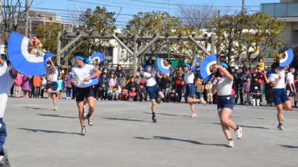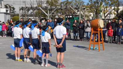 最初に5・6年生が「みかぐら」を披露しました。みんな半ズボン半袖の体育着にはちまきをして気合いが入ります。たくさんの応援の声を受けて、さあ5・6年生で披露するのも今日が最後になる踊りが始まりました。