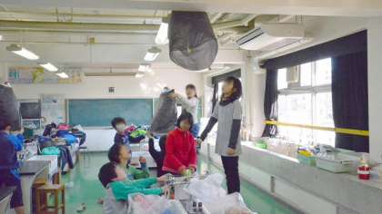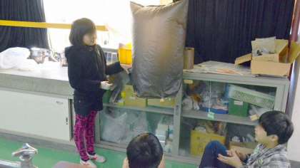 20日(月)6時間目のクラブ活動のようすです。科学・工作クラブでは、大きな袋にガスコンロで暖かい空気をためて飛ばしていました。見事に浮き上がると大きな歓声が巻き起こっていました。