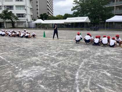 5年生の運動会は100m走と団体競技の追いかけ綱引きがあります。赤と白に分かれていますが、色ごとに先に綱を引くチームと後から走って追いかけて綱を引く2つのチームがあります。赤と白で作戦を考えて取り組み、上手くいかなかったらまた話し合い、試行錯誤を何度も繰り返しています。練習では、赤と白がそれぞれ1勝ずつし、勝負を決める3回戦になることも!本番ではどうなるのでしょうか?!たくさんのご声援をお願いします!!