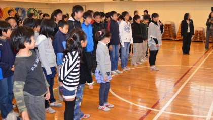 最後に、「Smile Again」を小学生と中学生一緒に歌いました。すばらしい合唱を聞いた後なので、本校の子どもたちの歌にも力がはいり、気持ちよさそうに歌っていました。年度末の忙しい時期にもかかわらず、来校してくださった中学2年生の皆さん、そして協力していただいた中学校の先生、朝早くから参観してくださった保護者、地域の皆さんに感謝いたします。おかげさまでとてもすてきな会となりました。