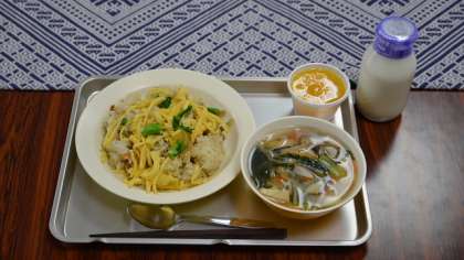 2日の給食です。明日3日のひな祭りをイメージしたものです。華やかな春の雰囲気を感じます。子どもたちも残さずおいしそうに食べていました。