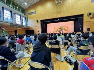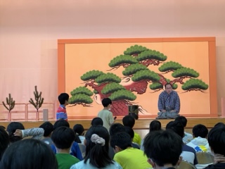 6月2日金曜日、お隣の船橋小にて古典芸能鑑賞教室がありました。室町時代から続く「狂言」について分かりやすくお話いただき、その後に「附子」を鑑賞しました。子どもたちからは時折笑い声が聞こえ、「狂言」の面白さを味わっているようでした。