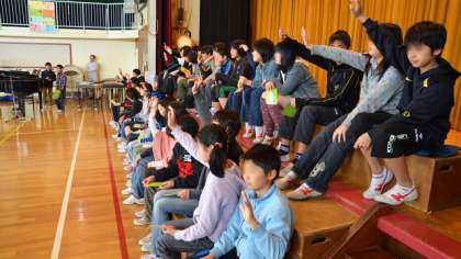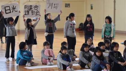 各学年の出し物。3年生は6年生3択クイズをしました。6年生にアンケートしたことをクイズにして、6年生自身に答えてもらうクイズです。なかなか当たらないのが不思議です。最後に3年生も手作りプレゼントを贈呈しました。