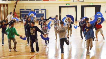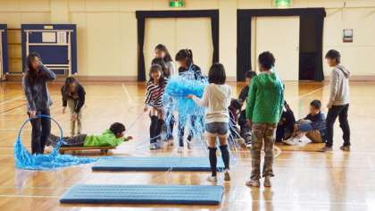 出し物の最後は5年生。6年生と一緒に活動した思い出を寸劇にしました。希望っ子班、水泳、みかぐらの練習の三場面です。練習の時間がなかなかとれず苦労しましたが、最後にがんばってみんなに披露し、6年生への感謝の気持ちを表すことができました。