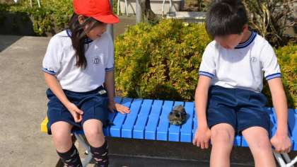 14日(水)、昼休みのようすです。3月も半ばというのに、ここ数日朝夕は肌寒い日が続いていますが、昼の校庭は風が校舎に遮られ、ポカポカと春の陽気です。子どもたちはひなたぼっこをしたり、飼育している動物の世話をしたり、遊びに興じたり、思い思いに楽しんでいます。平和な光景です。