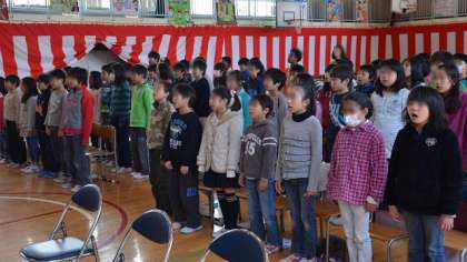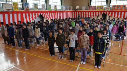 19日の卒業式合同練習の様子です。4・5・6年生が一緒に練習しました。入退場の演奏や歩き方、呼びかけや歌の練習をしました。前回より磨きがかかり、子どもたちのやる気が増しています。一緒の練習はあとは22日のリハーサルのみ。本番まであとわずかです。
