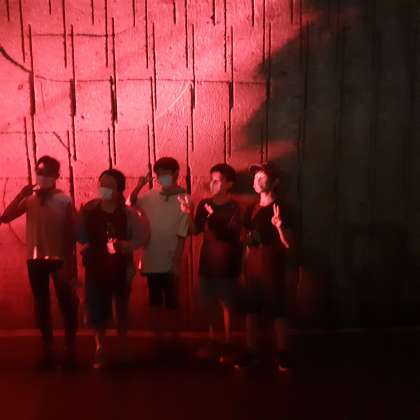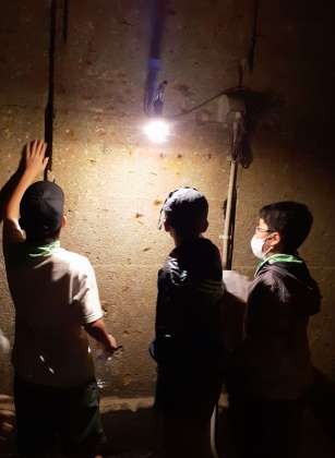 大谷資料館の地下の気温は12.5℃。階段を降りていくと「涼しい!」と気持ちよさそうにしていました。地下30メールに広がる巨大空間に子どもたちも興味津々でした。
