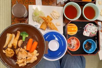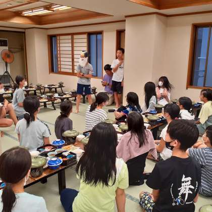 入浴も終え、夕食ではいただきますの前に係がたのしませてくれました。おかわりもたくさんしてみんなでおいしくいただきました。