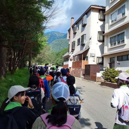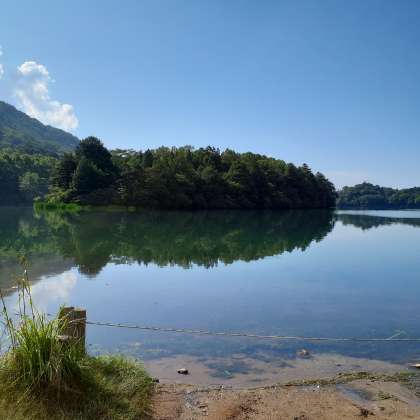 ハイキングスタートです。湯ノ湖周辺は快晴です。トンボの多さに驚きながら歩いています。