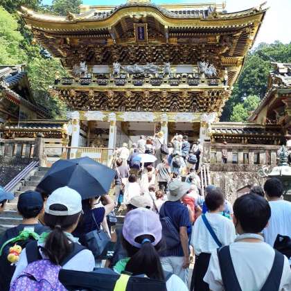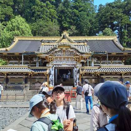 日光東照宮に着きました。とても天気がよく、奥日光と比べ暑く感じます。東照宮の参道からすすみ、子どもたちは今行動班ごとに見学しています。
