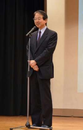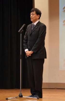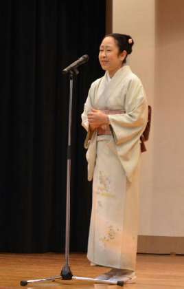 発表に先立って、佐藤実行委員長があでやかな着物姿であいさつ、続いてお忙しい中おいでいただいたご来賓の世田谷区長 保坂様、教育長 若井田様からご挨拶をいただきました。