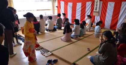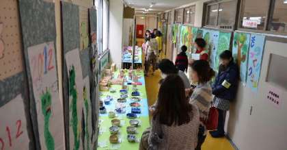 「伝統くらぶ」「ものづくりくらぶ」「ボランティアくらぶ」が舞台上で活動報告と展示の紹介をしました。1階のろうかでくらぶの作品展示が、2階に伝統くらぶのお茶席がしつらえられ、こちらも多くのお客様で賑わい、好評でした。