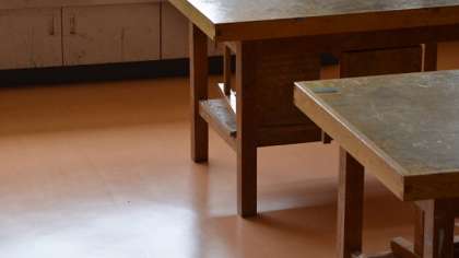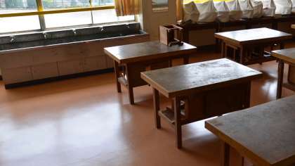 図工室の床がだいぶ痛んでいたので、全面を張り替え、以前より明るい雰囲気になりました。色塗りの道具や工具などを使うので汚れやすい図工室ですが、みんなで気をつけてきれいに使ってほしいと思います。