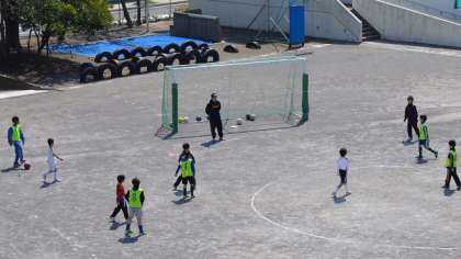 4月1日(日)午前、元気に活動する「グリーンファイターズFC」のようすです。今年度も元気な希望っ子です。