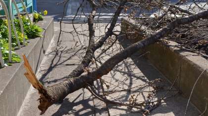 3日夕刻は大荒れの天気となり、強風、大雨となりました。学校の施設設備に大きな影響被害はありませんでしたが、ランチルーム前の桜の木の枝が折れて落下していました。また、折れかかっている枝もありましたので、早急に対処しました。今にも咲きそうなつぼみがたくさんついていたので、とても残念です。枝をそのまま処分するのもかわいそうなので、最後に一花咲かせようと考え、バケツに水をいれてさしてあります。花が咲いたら校舎のどこかに飾ろうかと思っています。