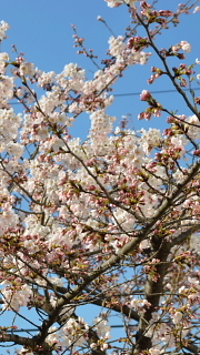 4日、正門前の桜のようすです。昨日の強風に耐え、一転して暖かくなった今日、一斉に花開き始めました。始業式、入学式には咲きそろうのではないでしょうか。明日は新2年生、新6年生の登校日となっています。9時までに登校してください。
