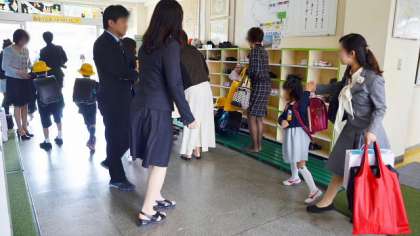 6日、入学式終了後、新入生は教室で保護者の皆さんにも参加していただき、学級開きが行われました。ちょっと緊張している子どもたちがかわいいですね。帰りには校庭や校門付近で記念撮影をして帰る様子が見られました。9日からの授業、待っています。