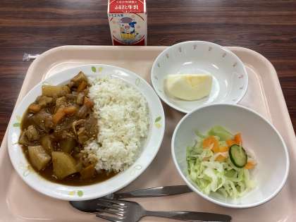 ☆献立☆ ひよこ豆のカレーライス 牛乳 ひとしお野菜 りんご
