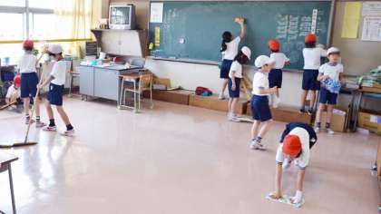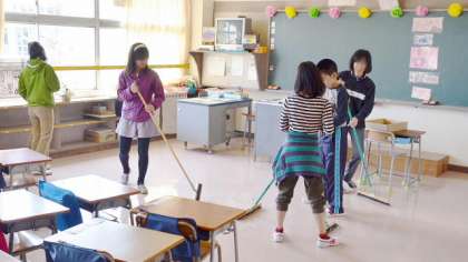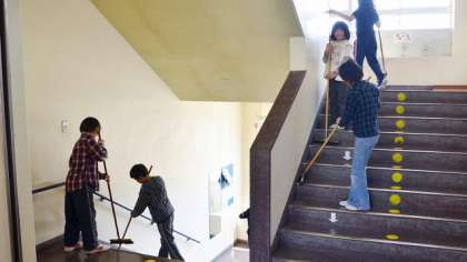 12日、掃除の時間に校内を回ってみました。どのクラスをまわっても子どもたちが一生懸命掃除をしています。まだ慣れていない場所でも、工夫しながらがんばっていました。
