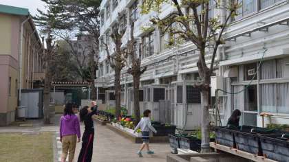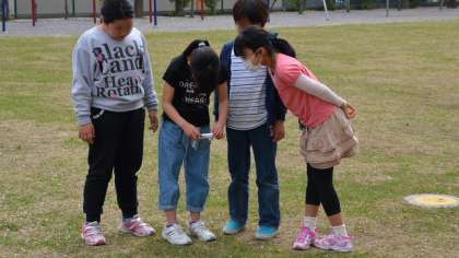 13日午後、4年生がグループごとにデジカメをもって自然観察をしていました。これから四季のようすを定期的に観察して記録していきます。
