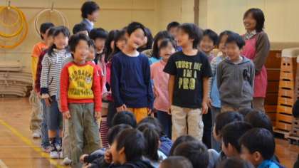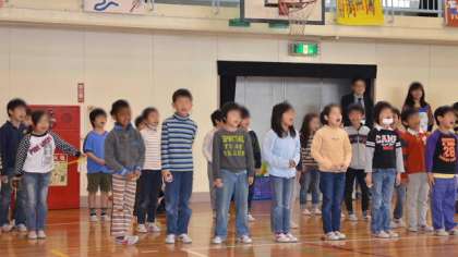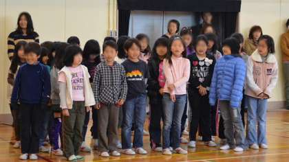 続いて各学年の紹介です。学年ごとに自分たちをアピールします。新学期が始まってわずかですが、各学年工夫して自分たちの得意なことや特徴を盛り込んで紹介をしました。