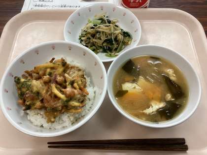 ⭐︎献立☆ かき揚げ丼 牛乳 菊の花入りおひたし みそ汁