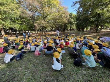 公園内で花や「芦花公園探検隊」に変身して木の実などを見付けるフィールドワークをしました。その後は、学年みんなで美味しいお弁当を食べました。