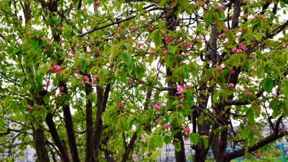 校庭東側とプール南側のカリンが今花盛りです。毎年たくさんの実をつけて、エコ活動の商品として子どもたちに配ったり、地域の皆さんにおすそ分けしたりしています。今年もたくさんの実がなりそうですね。