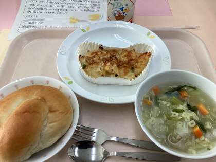 献立 ミルクパン 牛乳 ポテトのチーズ焼き ABCスープ