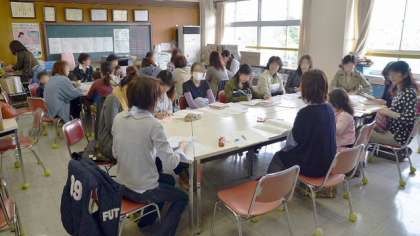 お休みの日の午前中にもかかわらず、各学級の委員になっていただいた皆さんが多数集まり、各委員会の話し合いが順調に進みました。今年度のPTAのテーマは、「みんなでつくろう希望の輪 〜きょうりょく ぼうさい かんきょう〜」です。共につくる希望の学校を皆さんの協力で実践していければと思っております。