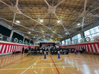 在校生代表として6年生が出席し、よろこびの言葉とともに合奏や合唱を披露しました。