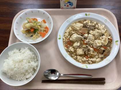 献立 ごはん 牛乳 家常豆腐 白菜キムチ